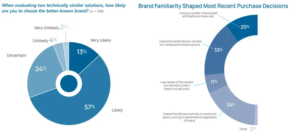The same report also says 70% of engineers and technical buyers choose the better-known brand when considering nearly identical suppliers. That tells me two things. Your website matters early. And the way your company presents expertise and credibility matters a lot.